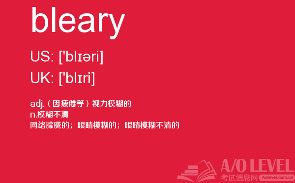你知道考上a-level考试如何报名吗?最近很多人询问英国a-level考试有多难?到底要不要参加a-level考试培训?抛弃这些,a/o-level考试网老师告诉你,a-level单词最重要,今天带你学习bleary怎么用,希望你认真的学习。如果您想了解alevel到底是什么课程,alevel考试要求,新加坡a水准好考吗,alevel网课等关于a-level考试的相关资讯,请继续浏览并关注课窝a/o-level考试网。