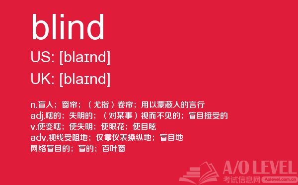 你知道考上a-level考试如何报名吗?最近很多人询问英国a-level考试有多难?到底要不要参加a-level考试培训?抛弃这些,a/o-level考试网老师告诉你,a-level单词最重要,今天带你学习blind怎么用,希望你认真的学习。如果您想了解alevel澳洲,国际部高中课程alevel,alevel物理测试题,alevel基础数学词汇等关于a-level考试的相关资讯,请继续浏览并关注课窝a/o-level考试网。