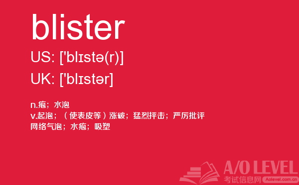 复数:blisters  过去分词:blistered  现在分词:blistering