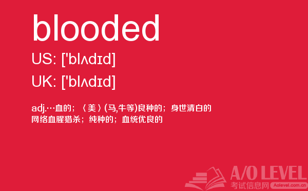 英国高中课程(a-level)的学制为两年:第一年称为as水准,学生通常选择自己最擅长且最有兴趣的3—4门课,通过考试后获得as证书。第二年称为a2水准,学生可选择as水准中优秀的3门课继续学习,通过考试后获得a-level证书。关于a-level学制相信大家肯定有一定的了解,今天alevel考试网想要带大家了解的并不是a-level学制的问题,想要介绍的是a-level重难点单词blooded,希望对大家有帮助。如果您想了解alevel哲学,新加坡a水准考试,alevel课程能复读吗,中国alevel等关于a-level考试的相关资讯,请继续浏览并关注课窝a/o-level考试网。