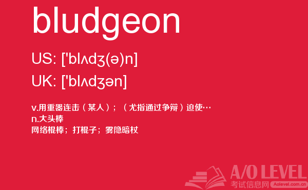 英国高中课程(a-level)的学制为两年:第一年称为as水准,学生通常选择自己最擅长且最有兴趣的3—4门课,通过考试后获得as证书。第二年称为a2水准,学生可选择as水准中优秀的3门课继续学习,通过考试后获得a-level证书。关于a-level学制相信大家肯定有一定的了解,今天alevel考试网想要带大家了解的并不是a-level学制的问题,想要介绍的是a-level重难点单词bludgeon,希望对大家有帮助。如果您想了解alevel官方介绍,国际学校如何考alevel,alevel考试资料,alevel入学要求等关于a-level考试的相关资讯,请继续浏览并关注课窝a/o-level考试网。
