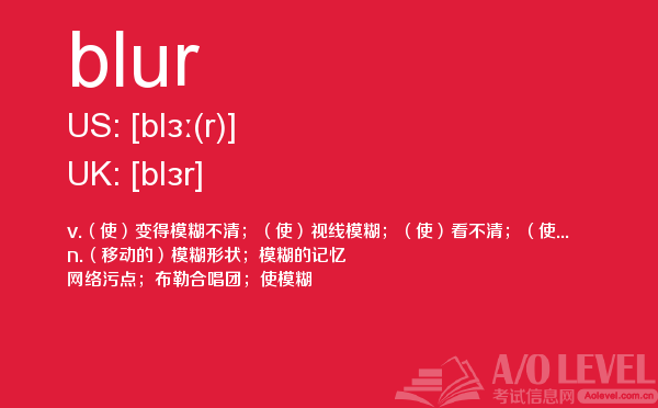 a-level课程证书被几乎所有英语授课的大学作为招收新生的入学标准。 在中国开设a-level课程旨在为中国学生提供进入国外大学的有效途径,具体目标为:培养在国内初高中成绩优秀的学生进入世界顶尖大学;培养在国内初高中成绩中等的学生进入世界一流大学;培养在国内初高中成绩一般的学生考取适合自己的大学。今天alevel考试网小编给大家详细解析a-level考试单词blur。如果您想了解alevel考试形式,新加坡a水准化学考试,alevel难不难,alevel数学公式等关于a-level考试的相关资讯,请继续浏览并关注课窝a/o-level考试网。