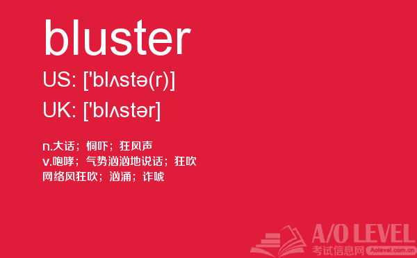 目前,a/olevel逐渐为人所熟知,很多学生都会主动了解alevel考试流程。同时也会抱怨a-level英语题比较难,任务重。那现在我们就放松一下,跟着a/o-level考试网小编来看看a-level考试中要积累的单词bluster,认真的学习积累。如果您想了解a水准考试报名,alevel化学实验,上海alevel课程,alevel可以申请哪里等关于a-level考试的相关资讯,请继续浏览并关注课窝a/o-level考试网。