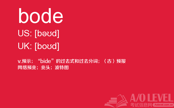 a-level课程包含70多门供学生选择,一般学生选择3至4门来学,中国学生在数学学科上有很大的优势,一般学生都会选择基础数学。学生选择课程时,一般要考虑现在自己的优势科目和将来的发展方向,即你想选择哪个大学、什么专业,从而根据他们的要求有的放矢地选课。关于alevel选课后续会详细介绍,下面带来a-level考试词汇bode的详细介绍。如果您想了解alevel物理实验,a水准考试要求,alevel词汇书,alevel经济分类等关于a-level考试的相关资讯,请继续浏览并关注课窝a/o-level考试网。