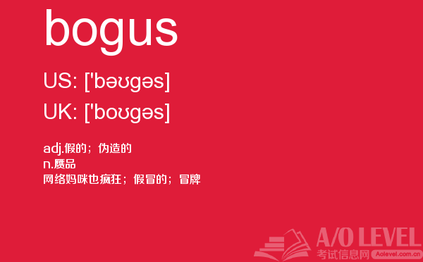 英国a-level学校,从教学质量上来看私立学校更占优势,大部分中国留学生也选择私立学校来读,不过一般都是提前一年来申请学校。中国目前也有20几所a-level学校,每年也同样有走进剑桥牛津等世界顶级大学的学生。所以在国外和在国内都可以选择a-level学校来学习。在前面关于a-level选校的问题已经详细介绍过,那么今天a/o-level考试网小编主要想介绍的是a-level重难点词汇bogus。希望对大家有帮助。如果您想了解alevel国际学校,alevel数学有几本书,英国alevel成绩只有c,alevel考试成绩等关于a-level考试的相关资讯,请继续浏览并关注课窝a/o-level考试网。