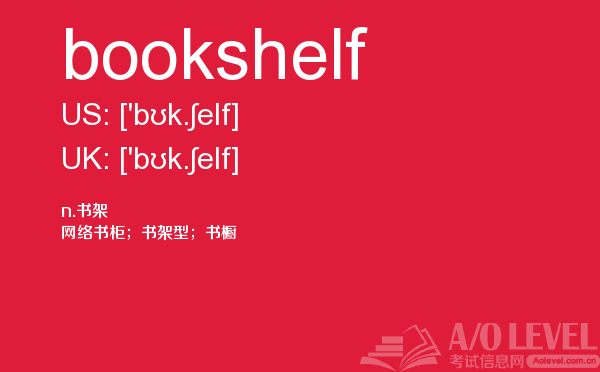 目前,a/olevel逐渐为人所熟知,很多学生都会主动了解alevel考试流程。同时也会抱怨a-level英语题比较难,任务重。那现在我们就放松一下,跟着a/o-level考试网小编来看看a-level考试中要积累的单词bookshelf,认真的学习积累。如果您想了解alevel时间,alevel考试报名费,国内学alevel要多少钱,alevel化学等关于a-level考试的相关资讯,请继续浏览并关注课窝a/o-level考试网。