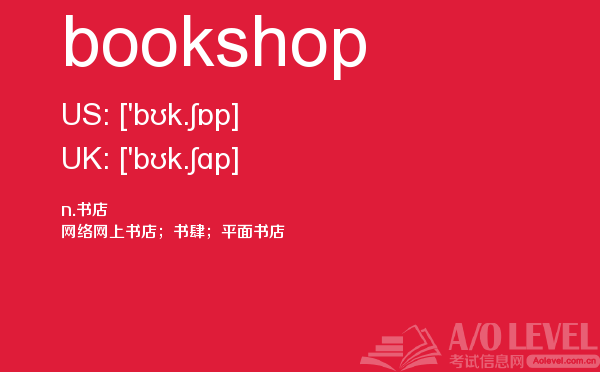 众多周知的英国a-level入学考试是进入英国院校的必经之路,所以我们自然不能小看,建议同学们能够加强a-level考试真题的练习,提前明确英国a-level考试报名的具体信息。为了提高考生们的英国a-level考试成绩,a/o-level考试网小编会每天给大家更新a-level留学资讯和alevel考试资讯,今天带来的是关于a-level考试词汇的单词全解,下面带你学习bookshop的用法。如果您想了解alevel课本,alevel基础数学词汇,alevel商科,新加坡a水准考试时间等关于a-level考试的相关资讯,请继续浏览并关注课窝a/o-level考试网。