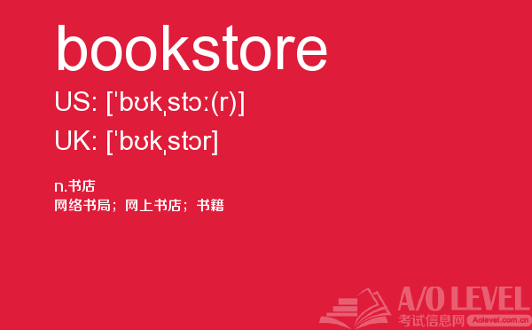 为了有a-level考试高分,很多童靴都参加英国高中课程a-level考试前都会做很多a-level考试真题。a-level考试备考要有一定的方法,课窝a/o-level考试网每天都会给大家带来a-level考试资讯,a-level考试备考相关的内容,今天课窝a/o-level考试网小编给大家带来关于a-level单词bookstore的详细介绍。如果您想了解新加坡的alevel难度,alevel夏令营,新加坡a水准官网,alevel历史等关于a-level考试的相关资讯,请继续浏览并关注课窝a/o-level考试网。