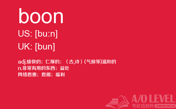今天课窝a/o-level考试网小编给大家带来alevel考试至关重要的内容a-level单词boon的详细介绍。希望大家能够认真的阅读,在备考a-level中会用到,关于a-level考试时间,alevel考试费用等相关问题,可以关注课窝a/o-level考试网。如果您想了解alevel难度,alevel课程有年龄限制,alevel考试时间,alevel课程价格等关于a-level考试的相关资讯,请继续浏览并关注课窝a/o-level考试网。