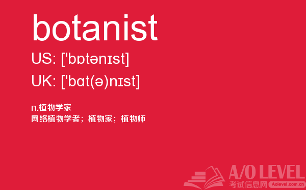 英国留学对于留学成绩的比拼越来越激烈,申请英国院校留学的一大指标a-level考试分数要求也水涨船高.虽然成绩只是申请的一部分,但不得不说,好看的英国a-level成绩是学生是否优秀的证据。放松一下跟着a/o-level考试网来学习一下a-level考试词汇botanist的应用。如果您想了解alevel考试机经,alevel真题试卷,alevel都有什么课程,alevel课程多久等关于a-level考试的相关资讯,请继续浏览并关注课窝a/o-level考试网。
