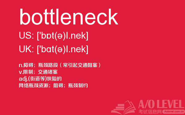 a-level考试报名须知是必须要懂得,这样在面对英国a-level入学考试的时候自己也知道应该怎么面对。为了提高考生们的a-level模拟考卷成绩,a/o-level考试网会经常给大家带来a-level考试资讯,下面就是今天课窝a/o-level考试网小编给大家讲解关于a-level考试词汇bottleneck怎么用。如果您想了解alevel有什么科目,alevel英语,美国有alevel课程吗,alevel考试时间费用等关于a-level考试的相关资讯,请继续浏览并关注课窝a/o-level考试网。