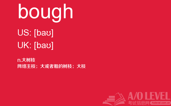 a-level(general certificate of education advanced level ),英国高中课程,是英国全民课程体系,是英国普通中等教育证书考试高级水平课程,也是英国学生的大学入学考试课程。今天alevel考试网小编给大家带来的alevel考试单词bough的详细介绍。希望大家能够认真的阅读。如果您想了解alevel写作真题,alevel写作分数,新加坡a水准报名费,新alevel等关于a-level考试的相关资讯,请继续浏览并关注课窝a/o-level考试网。