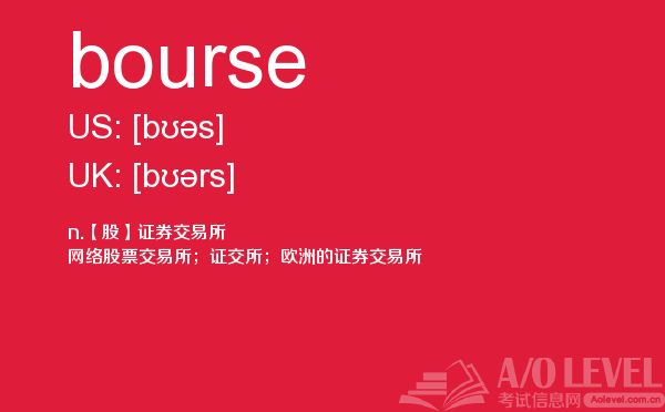 英国a-level学校,从教学质量上来看私立学校更占优势,大部分中国留学生也选择私立学校来读,不过一般都是提前一年来申请学校。中国目前也有20几所a-level学校,每年也同样有走进剑桥牛津等世界顶级大学的学生。所以在国外和在国内都可以选择a-level学校来学习。在前面关于a-level选校的问题已经详细介绍过,那么今天a/o-level考试网小编主要想介绍的是a-level重难点词汇bourse。希望对大家有帮助。如果您想了解alevel国际学校,alevel数学有几本书,英国alevel成绩只有c,alevel考试成绩等关于a-level考试的相关资讯,请继续浏览并关注课窝a/o-level考试网。