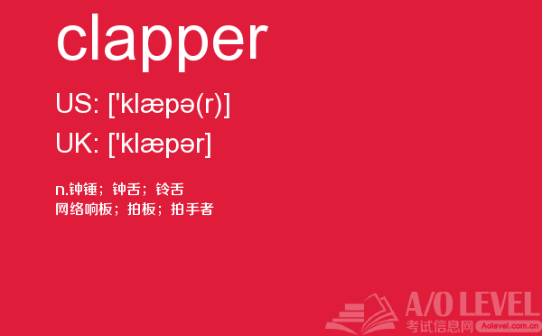 英国a-level学校,从教学质量上来看私立学校更占优势,大部分中国留学生也选择私立学校来读,不过一般都是提前一年来申请学校。中国目前也有20几所a-level学校,每年也同样有走进剑桥牛津等世界顶级大学的学生。所以在国外和在国内都可以选择a-level学校来学习。在前面关于a-level选校的问题已经详细介绍过,那么今天a/o-level考试网小编主要想介绍的是a-level重难点词汇clapper。希望对大家有帮助。如果您想了解alevel国际学校,alevel数学有几本书,英国alevel成绩只有c,alevel考试成绩等关于a-level考试的相关资讯,请继续浏览并关注课窝a/o-level考试网。
