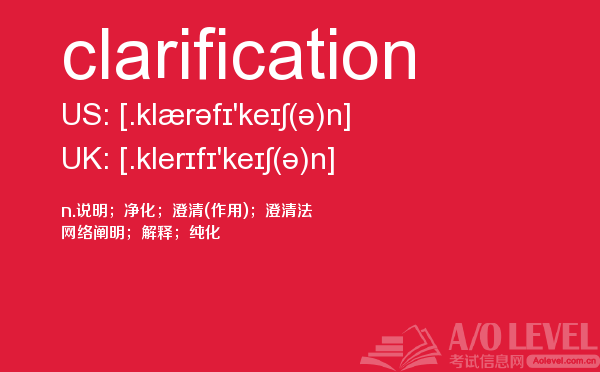 现在申请英国院校的中国孩子非常多,几乎每一个学生都在为一种叫做英国a-level的考试而努力着。a/o-level考试网老师为大家解析a-level考试重难点单词clarification,大家认真学习,会有帮助。如果您想了解新加坡国立大学a水准,中国alevel考试,alevel怎么考试,国际高中的课程alevel等关于a-level考试的相关资讯,请继续浏览并关注课窝a/o-level考试网。