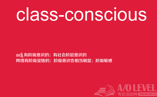 众多周知的英国a-level入学考试是进入英国院校的必经之路,所以我们自然不能小看,建议同学们能够加强a-level考试真题的练习,提前明确英国a-level考试报名的具体信息。为了提高考生们的英国a-level考试成绩,a/o-level考试网小编会每天给大家更新a-level留学资讯和alevel考试资讯,今天带来的是关于a-level考试词汇的单词全解,下面带你学习class-conscious的用法。如果您想了解中国alevel人数,alevel考试用品,alevel经济,alevel考试年龄等关于a-level考试的相关资讯,请继续浏览并关注课窝a/o-level考试网。