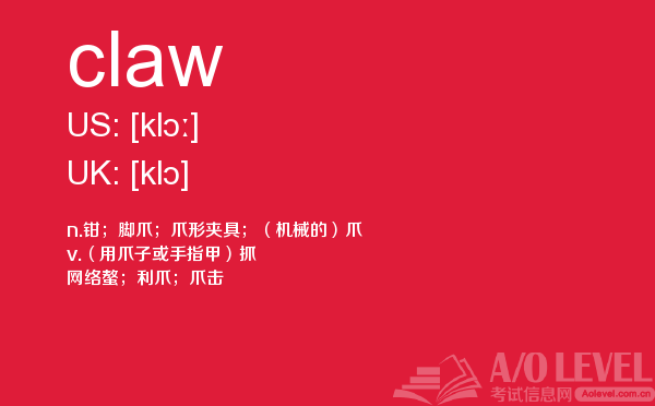 为了有a-level考试高分,很多童靴都参加英国高中课程a-level考试前都会做很多a-level考试真题。a-level考试备考要有一定的方法,课窝a/o-level考试网每天都会给大家带来a-level考试资讯,a-level考试备考相关的内容,今天课窝a/o-level考试网小编给大家带来关于a-level单词claw的详细介绍。如果您想了解新加坡留学a水准,alevel成绩有效期,alevel经济学章节总结,中国alevel等关于a-level考试的相关资讯,请继续浏览并关注课窝a/o-level考试网。