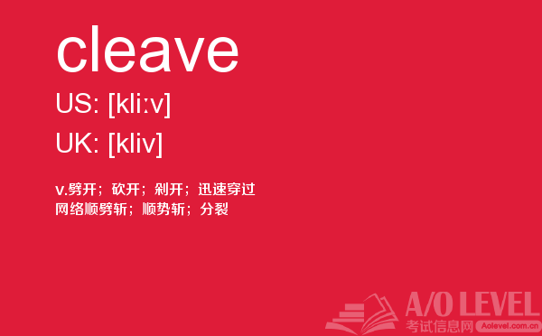 对于a-level考试,我们一再强调要加强a-level考试真题实战,多做英国a-level考试真题。放松一下,跟着a/o-level考试网来积累一下a-level考试中你会用到的单词cleave,对你的a-level考试会有很大的帮助。如果您想了解alevel生物难度,英国alevel排名,alevel考试考点,申请英国alevel高中等关于a-level考试的相关资讯,请继续浏览并关注课窝a/o-level考试网。