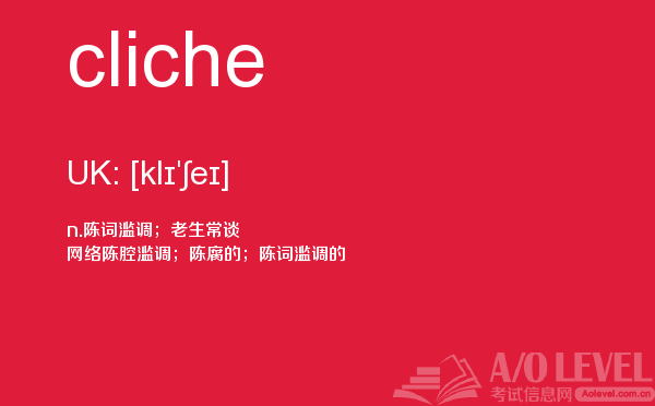虽然英国a-level院校招生官常把“成绩不是决定录取与否的唯一因素”挂在嘴边,但不得不承认,a-level分数是学生优秀与否的有力证据,取得a-level成绩高分是肯定是优先考虑的。放松一下,先跟着a/o-level考试网来看看今天小编带来的是a-level单词cliche的介绍。如果您想了解alevel培训价格,新加坡alevel,alevel化学提纲,alevel国际高中课程等关于a-level考试的相关资讯,请继续浏览并关注课窝a/o-level考试网。