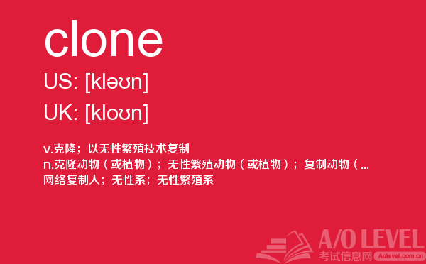 今天课窝a/o-level考试网小编给大家带来alevel考试至关重要的内容a-level单词clone的详细介绍。希望大家能够认真的阅读,在备考a-level中会用到,关于a-level考试时间,alevel考试费用等相关问题,可以关注课窝a/o-level考试网。如果您想了解a水准考试报名,alevel化学实验,上海alevel课程,alevel可以申请哪里等关于a-level考试的相关资讯,请继续浏览并关注课窝a/o-level考试网。