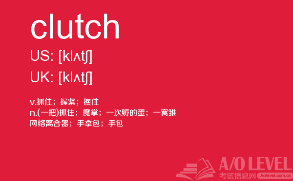 a-level(general certificate of education advanced level ),英国高中课程,是英国全民课程体系,是英国普通中等教育证书考试高级水平课程,也是英国学生的大学入学考试课程。今天alevel考试网小编给大家带来的alevel考试单词clutch的详细介绍。希望大家能够认真的阅读。如果您想了解墨尔本大学alevel申请条件,新加坡a水准优势,悉尼大学alevel申请,alevel时间等关于a-level考试的相关资讯,请继续浏览并关注课窝a/o-level考试网。