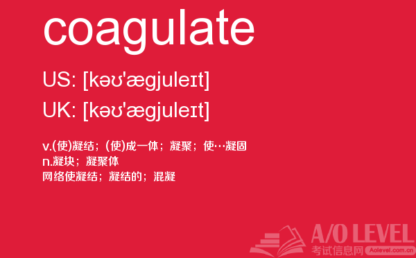 对于a-level考试,我们一再强调要加强a-level考试真题实战,多做英国a-level考试真题。放松一下,跟着a/o-level考试网来积累一下a-level考试中你会用到的单词coagulate,对你的a-level考试会有很大的帮助。如果您想了解alevel生物难度,英国alevel排名,alevel考试考点,申请英国alevel高中等关于a-level考试的相关资讯,请继续浏览并关注课窝a/o-level考试网。