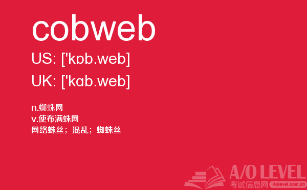 现在很多人来咨询a-level考试录取率,英国a-level考试题库的家长也依然不减,而考生们则更关心a-level教材以及a-level考试培训课程是什么样的。a/o-level考试网都会解答您。今天小编带来a/o-level考试网的内容是关于a-level词汇的cobweb单词的详细介绍。如果您想了解alevel怎么自学,a水准数学,alevel考试指南,alevel自学选什么等关于a-level考试的相关资讯,请继续浏览并关注课窝a/o-level考试网。