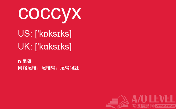 a- level课程一般在中国开设数学、进阶数学(或称高等数学)、物理、计算机学、会计学、商业学、经济学等课程供学生选择。那么关于alevel考生应该选哪些alevel课程呢?以后会给大家详细介绍,今天a/o-level考试网主要给大家全面介绍a-level词汇中的coccyx单词。如果您想了解alevel辅导上海,英国alevel课程是什么,在线alevel培训机构,alevel简介等关于a-level考试的相关资讯,请继续浏览并关注课窝a/o-level考试网。