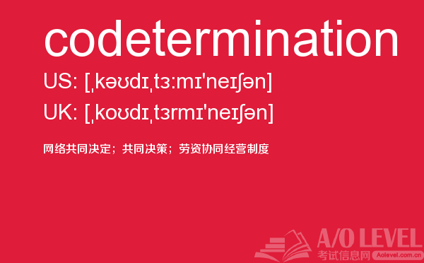 a-level考试报名须知是必须要懂得,这样在面对英国a-level入学考试的时候自己也知道应该怎么面对。为了提高考生们的a-level模拟考卷成绩,a/o-level考试网会经常给大家带来a-level考试资讯,下面就是今天课窝a/o-level考试网小编给大家讲解关于a-level考试词汇codetermination怎么用。如果您想了解新加坡a水准数学考试,alevel课程设置,新加坡2018年a水准,港大alevel申请条件等关于a-level考试的相关资讯,请继续浏览并关注课窝a/o-level考试网。