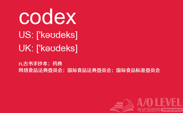 就读于国内学校的学生, 在申请英国学校时需要提交英国a-level考试成绩。很多考生因此英国a-level考试搞得头疼,放松一下,跟着a/o-level考试网来看看英国留学资讯吧!今天课窝a/o-level考试网小编给大家带来a-level考试重点词汇codex的全解,对你肯定有帮助。如果您想了解alevel是什么,alevel课程培训,alevel考试地点,新加坡a水准考试等关于a-level考试的相关资讯,请继续浏览并关注课窝a/o-level考试网。