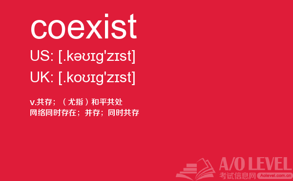 英国、加拿大、爱尔兰、澳大利亚、新西兰、新加坡等英语国家没有统一的大学入学标准,虽然它们都认可a-level证书,但是各所大学、各个专业对学生学过哪几门a-level课程以及成绩都有不同的要求。所以怎样选择课程并没有一个唯一的答案。对于如何选课的问题要根据具体情况而定。这些在你的a-level考试中都不是重要的,重要的是a-level成绩,a-level成绩取决于a-level词汇量,那么今天小编给大家带来a-level考试重点词汇coexist的全面解析。如果您想了解alevel经济essay,在线alevel课程,英国高考alevel,alevel进阶数学分数段等关于a-level考试的相关资讯,请继续浏览并关注课窝a/o-level考试网。