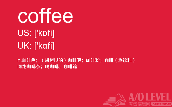现在申请英国院校的中国孩子非常多,几乎每一个学生都在为一种叫做英国a-level的考试而努力着。a/o-level考试网老师为大家解析a-level考试重难点单词coffee,大家认真学习,会有帮助。如果您想了解alevel物理中文,alevel考试数学试卷,alevel容易拿a的科目,alevel介绍等关于a-level考试的相关资讯,请继续浏览并关注课窝a/o-level考试网。