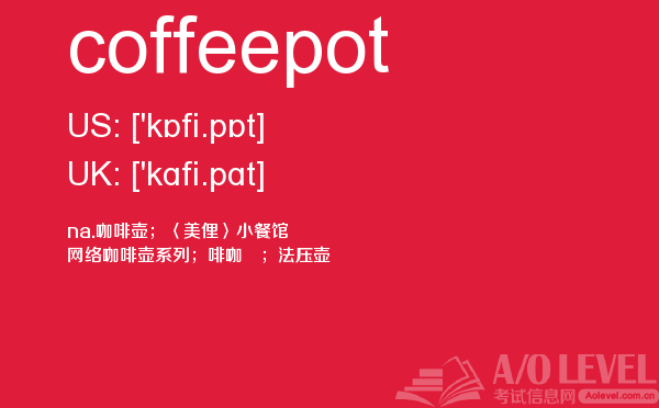 a-level词汇量受到的关注越来越高,很多家长担心a-level考试培训费用,a-level考试录取竞争会不会越来越激烈?这些问题在课窝a/o-level考试网小编都会给大家带来详细介绍,今天a/o-level考试网小编给大家带来的是在a-level考试中的重点词汇coffeepot的详细介绍。如果您想了解a水准考试范围,alevel预测,新加坡a水准考试,英国高中alevel排名等关于a-level考试的相关资讯,请继续浏览并关注课窝a/o-level考试网。