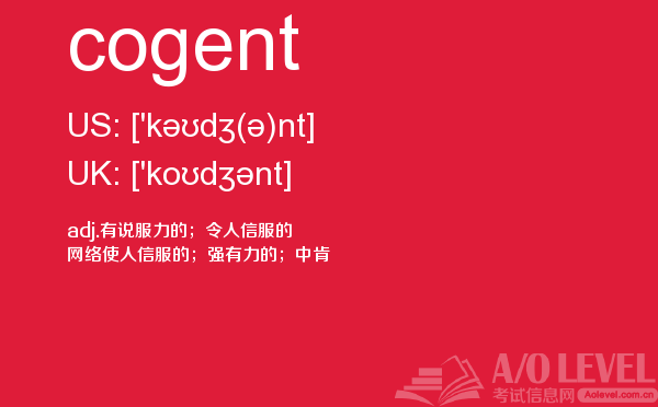 课窝a/o-level考试网上提供了许多信息可以供考生们参考,比如考生需要在此网站报名,打印准考证,或者搜寻与英国a-level考试内容相关的资料等等。考生如果想在短时间内,迅速掌握a-level考试资讯,就需要合理运用此网站的信息。今天带来的是a-level考试词汇之cogent的详细介绍。如果您想了解a水准简单吗,alevel物理知识点,新加坡2018年a水准,alevel的词汇量等关于a-level考试的相关资讯,请继续浏览并关注课窝a/o-level考试网。