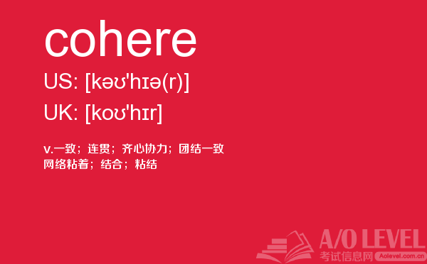 随着英国留学申请竞争的白热化,a-level成绩在学生个人简历中扮演的“入场券”角色,变得越来越重要。然而,在你参加a-level考试培训班前,你首先要对a-level考试有着一定的了解,一起跟着a/o-level考试网来看看小编今天带来a-level单词cohere的详细介绍。如果您想了解alevel课程可以申请留学新加坡吗,alevel中文书目,alevel词汇量,alevel参考书等关于a-level考试的相关资讯,请继续浏览并关注课窝a/o-level考试网。
