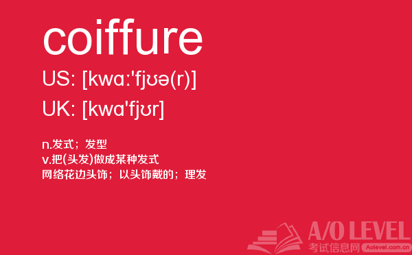 对于a-level考试,我们一再强调要加强a-level考试真题实战,多做英国a-level考试真题。放松一下,跟着a/o-level考试网来积累一下a-level考试中你会用到的单词coiffure,对你的a-level考试会有很大的帮助。如果您想了解新加坡大学alevel,爱德思alevel答案,alevel一对一,alevel可以申请哪里等关于a-level考试的相关资讯,请继续浏览并关注课窝a/o-level考试网。