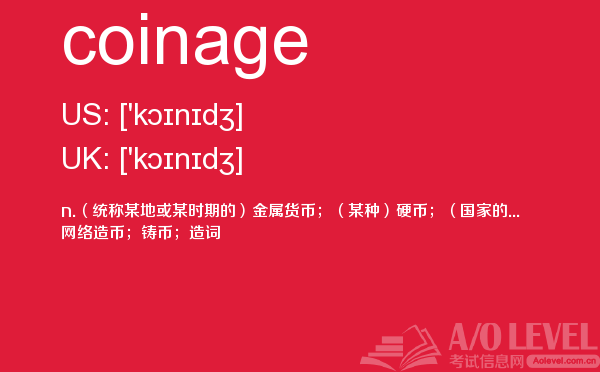 随着英国留学申请竞争的白热化,a-level成绩在学生个人简历中扮演的“入场券”角色,变得越来越重要。然而,在你参加a-level考试培训班前,你首先要对a-level考试有着一定的了解,一起跟着a/o-level考试网来看看小编今天带来a-level单词coinage的详细介绍。如果您想了解alevel经济培训班,中国alevel学校,a水准数学,alevel数学包括什么等关于a-level考试的相关资讯,请继续浏览并关注课窝a/o-level考试网。
