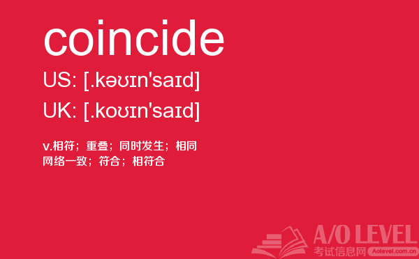 英国a-level入学考试的机会真的很少,每年就5-6月和10-11月两场考试。所以千万别因为不必要的原因,影响了a-level入学考试。为了让大家更好的在英国留学,a/o-level考试网会为大家带来a-level考试相关的资讯,一起来看看a/o-level考试网今天带来的词汇coincide的解析。如果您想了解alevel考试费,alevel阅读,一年读完alevel,南京alevel课程辅导等关于a-level考试的相关资讯,请继续浏览并关注课窝a/o-level考试网。