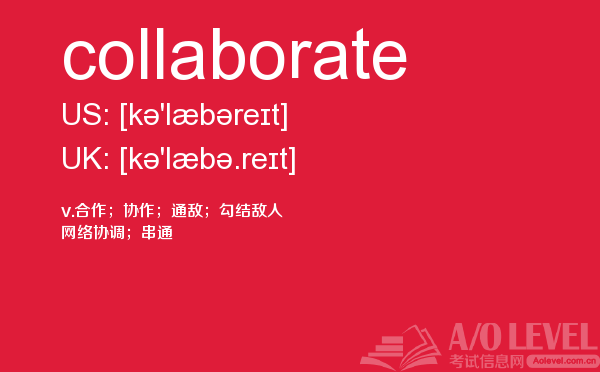 随著学生的素质提升,各大a-level课程培训班的师资和英国a-level题库也不断的完善,近年来学生考出来a-level分数也不断上涨。但是去英国留学,对英国留学资讯和英国的a-level考试资讯都是需要了解的,下面一起跟着a/o-level考试网来看看a-level词汇之collaborate的详细介绍。如果您想了解新加坡a水准预科,查询alevel考试报名信息2018,alevel化学提纲,alevel考试介绍等关于a-level考试的相关资讯,请继续浏览并关注课窝a/o-level考试网。