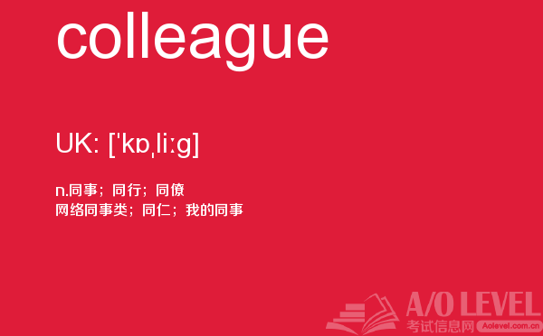 虽然英国a-level院校招生官常把“成绩不是决定录取与否的唯一因素”挂在嘴边,但不得不承认,a-level分数是学生优秀与否的有力证据,取得a-level成绩高分是肯定是优先考虑的。放松一下,先跟着a/o-level考试网来看看今天小编带来的是a-level单词colleague的介绍。如果您想了解alevel考试考点,alevel经济学答题技巧,剑桥a水准,alevel考试安排等关于a-level考试的相关资讯,请继续浏览并关注课窝a/o-level考试网。