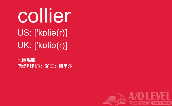 现在很多人来咨询a-level考试录取率,英国a-level考试题库的家长也依然不减,而考生们则更关心a-level教材以及a-level考试培训课程是什么样的。a/o-level考试网都会解答您。今天小编带来a/o-level考试网的内容是关于a-level词汇的collier单词的详细介绍。如果您想了解新加坡留学a水准,alevel成绩有效期,alevel经济学章节总结,中国alevel等关于a-level考试的相关资讯,请继续浏览并关注课窝a/o-level考试网。