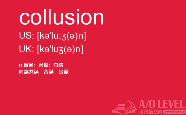 a-level考试报名须知是必须要懂得,这样在面对英国a-level入学考试的时候自己也知道应该怎么面对。为了提高考生们的a-level模拟考卷成绩,a/o-level考试网会经常给大家带来a-level考试资讯,下面就是今天课窝a/o-level考试网小编给大家讲解关于a-level考试词汇collusion怎么用。如果您想了解上海alevel培训学校,澳大利亚alevel,alevel报名截止日期,爱德思alevel考试时间等关于a-level考试的相关资讯,请继续浏览并关注课窝a/o-level考试网。