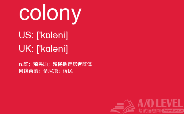 就读于国内学校的学生, 在申请英国学校时需要提交英国a-level考试成绩。很多考生因此英国a-level考试搞得头疼,放松一下,跟着a/o-level考试网来看看英国留学资讯吧!今天课窝a/o-level考试网小编给大家带来a-level考试重点词汇colony的全解,对你肯定有帮助。如果您想了解alevel培训哪家好,南京alevel,alevel英语是什么,alevel等关于a-level考试的相关资讯,请继续浏览并关注课窝a/o-level考试网。