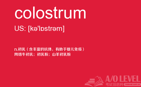 a-level课程证书被几乎所有英语授课的大学作为招收新生的入学标准。 在中国开设a-level课程旨在为中国学生提供进入国外大学的有效途径,具体目标为:培养在国内初高中成绩优秀的学生进入世界顶尖大学;培养在国内初高中成绩中等的学生进入世界一流大学;培养在国内初高中成绩一般的学生考取适合自己的大学。今天alevel考试网小编给大家详细解析a-level考试单词colostrum。如果您想了解alevel有什么好学校,新加坡a水准好考吗,alevel数学难度,港大alevel申请条件等关于a-level考试的相关资讯,请继续浏览并关注课窝a/o-level考试网。