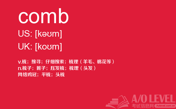 a-level词汇量受到的关注越来越高,很多家长担心a-level考试培训费用,a-level考试录取竞争会不会越来越激烈?这些问题在课窝a/o-level考试网小编都会给大家带来详细介绍,今天a/o-level考试网小编给大家带来的是在a-level考试中的重点词汇comb的详细介绍。如果您想了解牛津大学alevel,上海alevel国际学校,alevel数学评分标准,alevel考试大纲等关于a-level考试的相关资讯,请继续浏览并关注课窝a/o-level考试网。