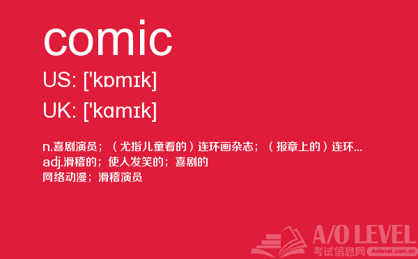 a-level考试报名须知是必须要懂得,这样在面对英国a-level入学考试的时候自己也知道应该怎么面对。为了提高考生们的a-level模拟考卷成绩,a/o-level考试网会经常给大家带来a-level考试资讯,下面就是今天课窝a/o-level考试网小编给大家讲解关于a-level考试词汇comic怎么用。如果您想了解alevel数学,alevel历年成绩分析,alevel物理知识,南京a水准培训等关于a-level考试的相关资讯,请继续浏览并关注课窝a/o-level考试网。
