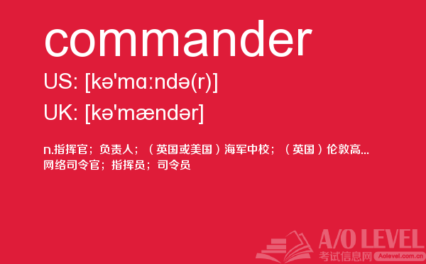英国a-level考试是英国留学生去英国留学需要参加的考试,很多考生担心a-level考试分数要求高,英国a-level考试难度大,别担心,只要认真的学习a-level考试内容,小编相信大家一定能够考得a-level高分。今天a/o-level考试网给大家带来单词commander的全面解析。如果您想了解中国alevel成绩申请国外名校,alevel数学名词,英国alevel成绩只有c,alevel申请条件等关于a-level考试的相关资讯,请继续浏览并关注课窝a/o-level考试网。