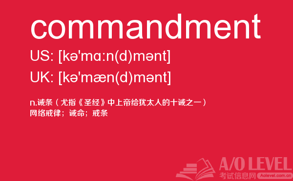 目前,a/olevel逐渐为人所熟知,很多学生都会主动了解alevel考试流程。同时也会抱怨a-level英语题比较难,任务重。那现在我们就放松一下,跟着a/o-level考试网小编来看看a-level考试中要积累的单词commandment,认真的学习积累。如果您想了解alevel考场地址,alevel中文考试真题,alevel物理常备词汇,alevel辅导等关于a-level考试的相关资讯,请继续浏览并关注课窝a/o-level考试网。