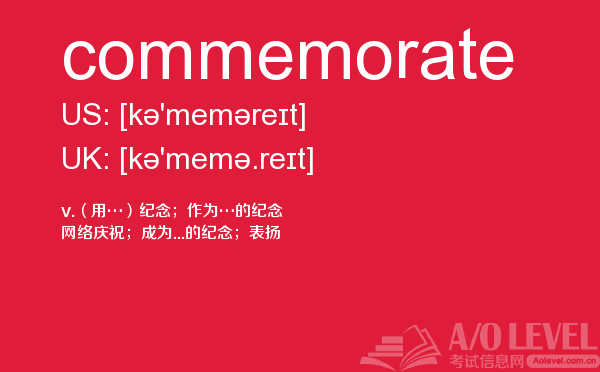 今天课窝a/o-level考试网小编给大家带来alevel考试至关重要的内容a-level单词commemorate的详细介绍。希望大家能够认真的阅读,在备考a-level中会用到,关于a-level考试时间,alevel考试费用等相关问题,可以关注课窝a/o-level考试网。如果您想了解alevel双语教材,英国alevel课程是什么,alevel课程物理总结,alevel考试成绩查询等关于a-level考试的相关资讯,请继续浏览并关注课窝a/o-level考试网。