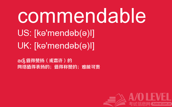 虽然英国a-level院校招生官常把“成绩不是决定录取与否的唯一因素”挂在嘴边,但不得不承认,a-level分数是学生优秀与否的有力证据,取得a-level成绩高分是肯定是优先考虑的。放松一下,先跟着a/o-level考试网来看看今天小编带来的是a-level单词commendable的介绍。如果您想了解alevel中文口语,alevel社会学,a水准一年,新加坡最好的a水准预科学校等关于a-level考试的相关资讯,请继续浏览并关注课窝a/o-level考试网。